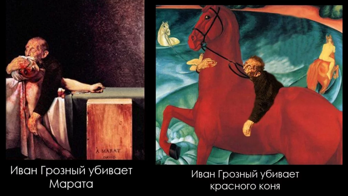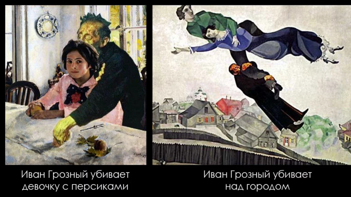 А в 2000-х полотно растащили на мемы: благодаря пользователям Иван Васильевич убивал не только сына, но и Девочку с персиками Серова, красного коня Петрова-Водкина, Марата с картины Жака-Луи Давида и даже Ленина. Если добавить немного юмора, у проклятия нет шансов.