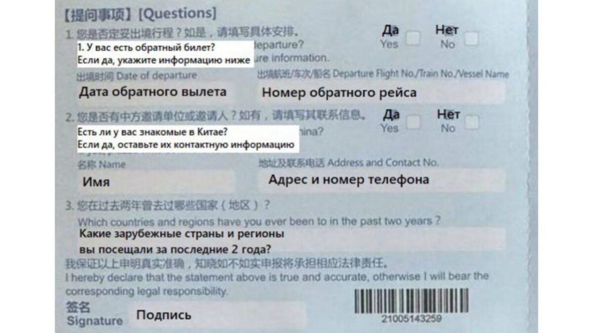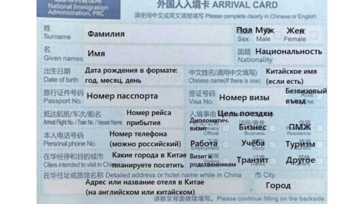 Когда ты прилетишь, перед паспортным контролем сотрудник аэропорта направит тебя и других иностранцев к стойке с анкетами. Нужно будет самостоятельно заполнить всю информацию о себе и своей поездке. Все пункты – на китайском и английском языках.