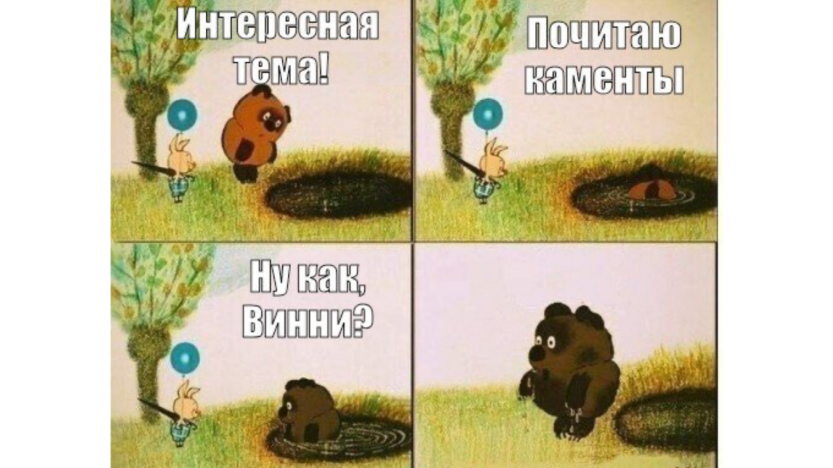 В честь дня рождения Винни-Пуха вспоминаем лучшие мемы с его участием. Один из них – где медведь упал в лужу и почернел. Шутки с таким сюжетом придумай сам.